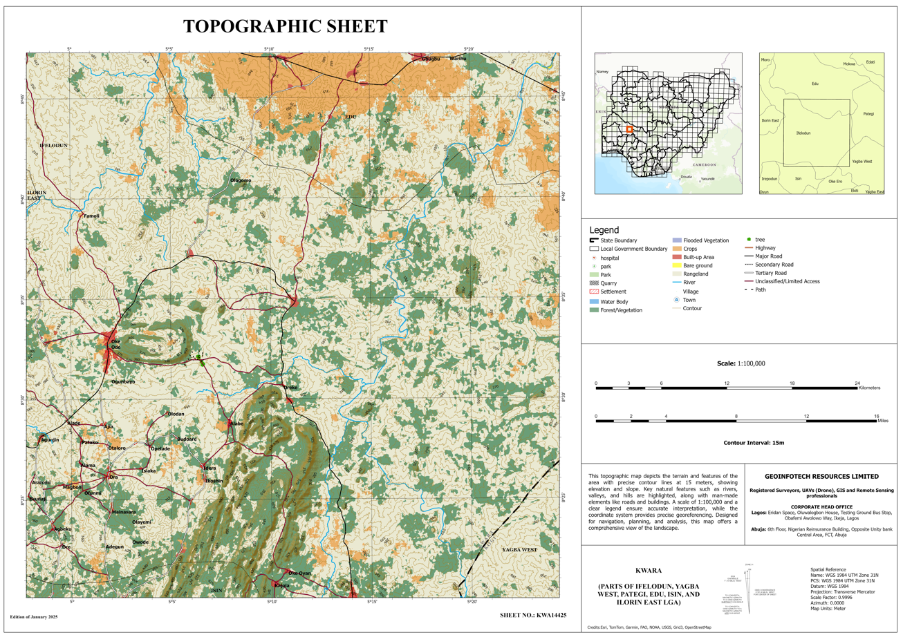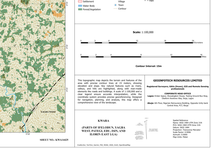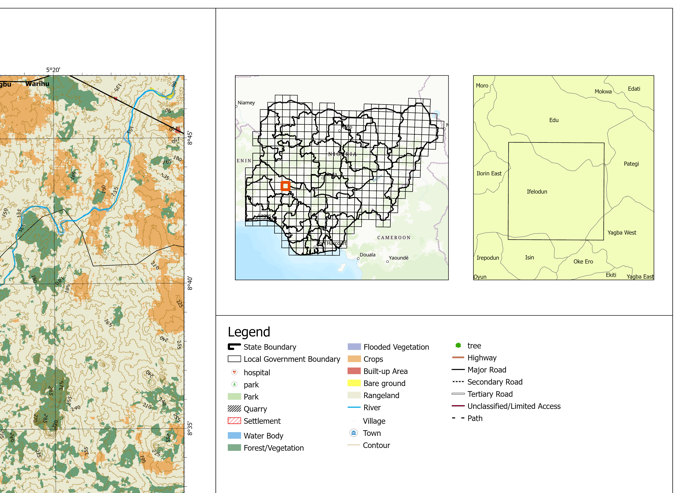 Pategi, Edu, Isin & Ilorin East LGA, Railway, Town, Contour, Forest